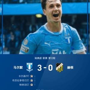 6月1日讯,北京时间20点,瑞典超第12轮,马尔默坐镇主场迎战赫根。关键事件...
