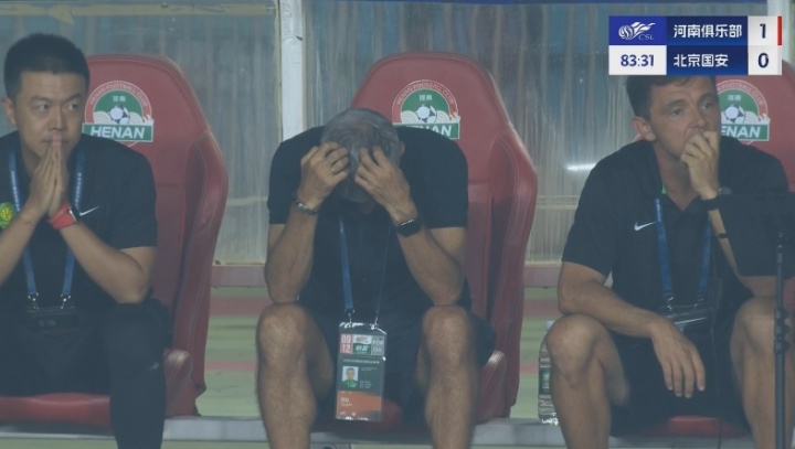 压力太大!国安送点后塞蒂恩完全不敢看,头埋在自己怀里了