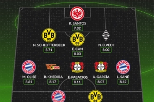 WhoScored德甲第27轮最佳阵容: